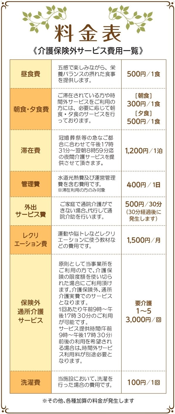 ご家族の予定に合わせて滞在(1泊1,200円)が可能です。普段通っているデイサービスで宿泊されるので認知症の症状を悪化させず安心して過ごすことが出来ます。